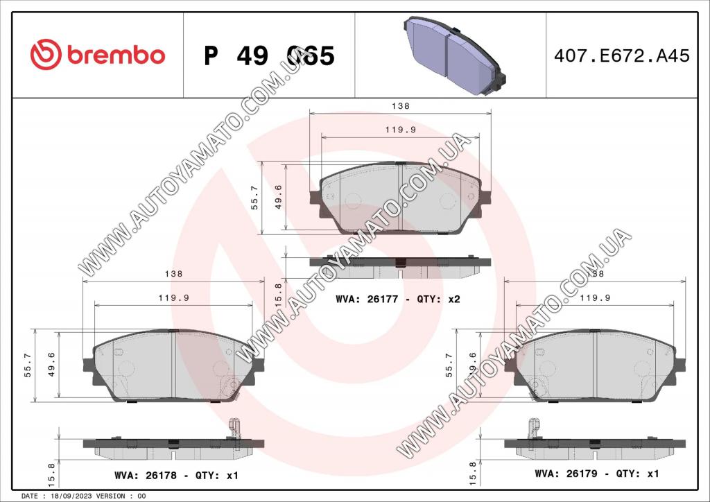 P49065 BREMBO - Тормозные колодки - Autoyamato